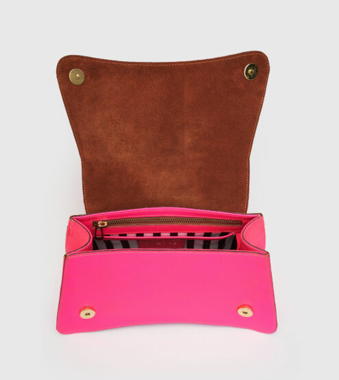 Bolso de piel. Tres bolsillos interiores, dos plaqué y uno con cremallera metálica. Llavero colgante interno con mosqueton y porta labial. Bolsillo auxiliar trasero con cremallera de metal con capacidad para celular de tamaño máximo. Cierra con imán en solapa. Asa de mano fija y asa larga desmontable y regulable de 104 cm a 108 cm, ideal para uso de hombro y bandolera. Piel: Vacuna. Forro: Algodón 100%. Herrajes: Oro / Níquel. Sentéz fabrica sus productos con pieles de primera calidad por lo que requieren un cuidado especial.