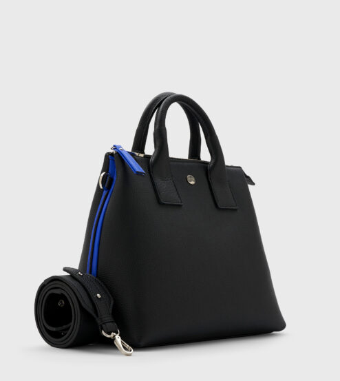 Bolso de piel con laterales y vivo en fluor. Dos bolsillos interiores, uno plaqué y otro con cremallera metálica. Dos compartimentos internos divididos por bolsillo con cremallera metálica. Cierra con cremallera metálica. Piel: Vacuna. Forro: Algodón 100%. Herrajes: Oro. Asa de mano de 10 cm. Asa bandolera de piel impresa de 104 cm a 108 cm, ajustable de ambos lados, removible. Sentéz fabrica sus productos con pieles de primera calidad por lo que requieren un cuidado y tratamiento especial. Peso: 0,650 kg. Profundidad: 17 cm – Alto: 26 cm – Ancho: 30 cm