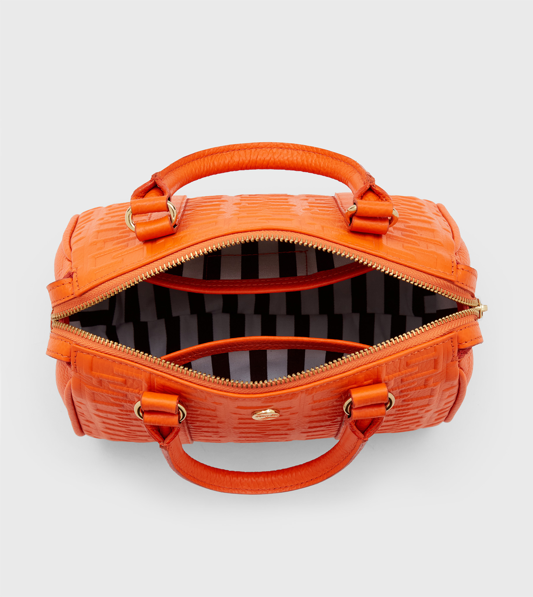 Bolso de piel texturada, cierra con cremallera. Dos asas fijas cortas para uso de mano y otra larga para uso de hombro o bandolera. Forrado en algodón 100% con estampa exclusiva Sentèz. Dos bolsillos internos plaqué.