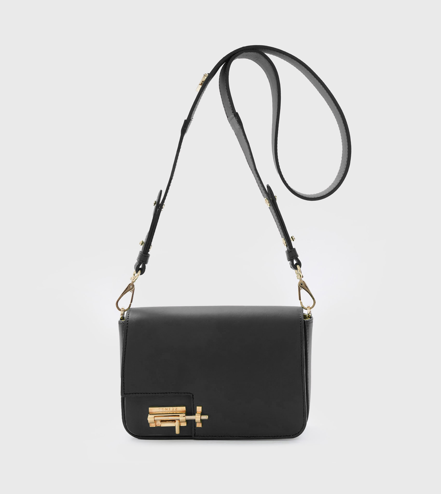 Bolso de piel con solapa irregular . Cierra con herraje traba exclusivo Sentèz y broche imán.